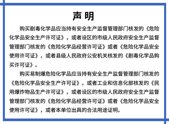 公司主營(yíng):危險(xiǎn)化學(xué)品、劇毒品、易制毒化學(xué)品、 易制爆化學(xué)品(共計(jì)2300個(gè)品種)、化工原料、化學(xué)試劑、玻璃儀器、實(shí)驗(yàn)設(shè)備、食品添加劑等多種產(chǎn)品;為合成化工行業(yè)、環(huán)保行業(yè)、電子行業(yè)、汽車(chē)行業(yè)、醫(yī)藥行業(yè)、玻璃行業(yè)等眾多客戶(hù)提供優(yōu)質(zhì)服務(wù)。